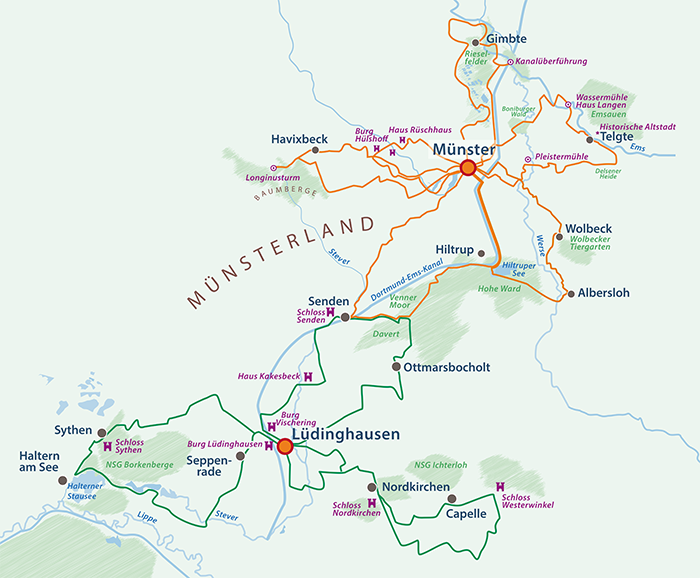 Bei unseren Sternradtouren entdecken Sie das Münsterland ganz entspannt vom festen Hotelstandort aus. Jeden Tag starten Sie zu neuen Ausflügen auf idyllischen Pättkes-Radwegen durch die Parklandschaften, vorbei an Schlössern, Burgen und charmanten Dörfern. Ob kürzere Touren für einen gemütlichen Radtag oder längere Etappen für Entdecker – Sie entscheiden selbst, wie aktiv Sie sein möchten. Und wenn Sie einmal eine Pause einlegen wollen, genießen Sie die Annehmlichkeiten Ihres Hotels oder bummeln durch die Stadt.