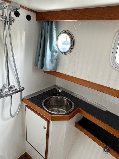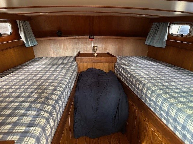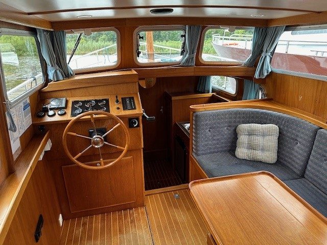 Ausstattung: Bug- und Heckschraube, Landstromanschluss, Kühlschrank, Kaffeemaschine, fließend Warm- und Kaltwasser, Dusche, Heizung, Bettzeug und Bettwäsche, Handtücher, Geschirrtücher, Staubsauger, Radio, CD