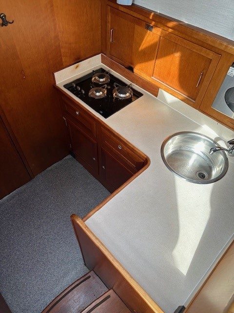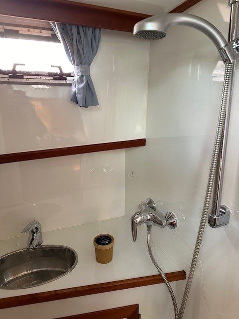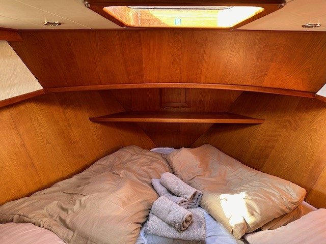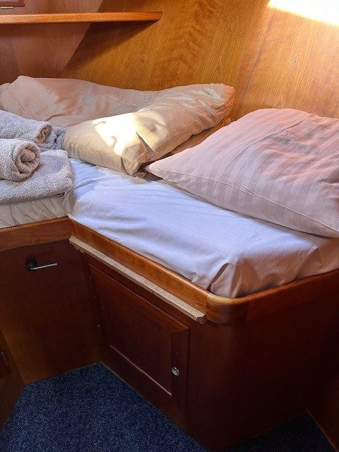 Ausstattung: Bug- und Heckschraube, Landstromanschluss, Kühlschrank, Kaffeemaschine, fließend Warm- und Kaltwasser, Dusche, Heizung, Bettzeug und Bettwäsche, Handtücher, Geschirrtücher, Staubsauger, Radio, CD