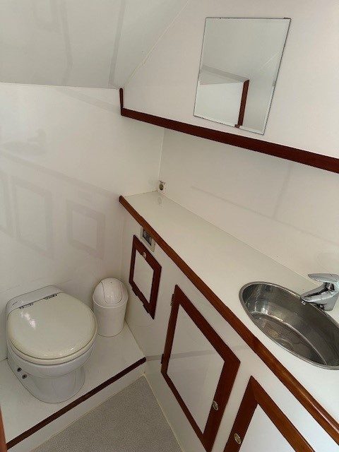 4 feste Schlafplätze in 2 Kabinen mit je eigener Dusche und elektrischem WC. Geschlossenes Cabriocap für geschütztes Fahren bei jedem Wetter.