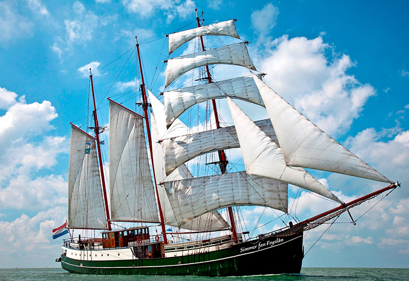 Heute werden die Segel gesetzt. Ihr Reiseziel ist die weiter östlich gelegene Insel Terschelling. Dabei durchkreuzen Sie das Wattenmeer mit seinen vielen Sandbänken, wo Sie vielleicht Seehunde sehen können. Während der Segeltour wird heute anstelle des Abendessens ein reichhaltiges Mittagessen serviert. Wenn das Wetter es zulässt, speisen Sie an Deck. Die genaue Strecke und Reisedauer sind von der Gezeitenströmung und vom Wind abhängig. Im Laufe des Nachmittags kommen Sie auf Terschelling an. Die hübschen Dörfchen auf der schmalen und ca. 30 km langen Insel haben viel von ihrem alten Charme bewahrt. Heute wird an Bord kein Abendessen serviert. So haben Sie die Möglichkeit, den Hafen der schönen Insel mit seinen vielen netten Restaurants und Kneipen auszukundschaften.