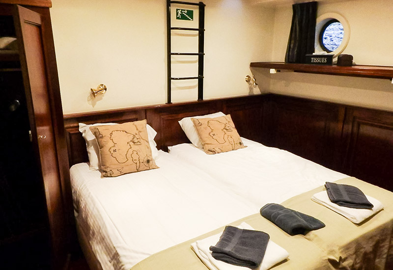 Für Familien oder Freundesgruppen stehen vier 3-Bett-Kabinen mit drittem, klappbarem Bett zur Verfügung.