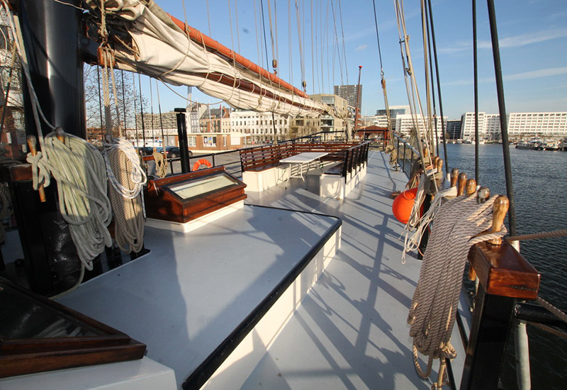 Die Simmer fan Fryslân ist eine eindrucksvolle Dreimast-Galeasse mit einer bewegten Geschichte. Ursprünglich 1932 als segelndes Frachtschiff gebaut, wurde sie 2003 liebevoll in ein komfortables und charaktervolles Passagiersschiff umgewandelt. Unter Deck erwarten Sie zwölf großzügige Zweibettkabinen (11–13 m²), jeweils mit zwei Einzelbetten und einem eigenen Bad mit Dusche, WC und Waschbecken – alles, was Sie für einen entspannten Aufenthalt brauchen. Auf dem Hauptdeck lädt das stimmungsvolle Restaurant mit gut ausgestatteter Bar im maritimen Stil zum gemütlichen Beisammensein ein. Eine zweite Lounge im Deckshaus ist ideal zum Entspannen mit einem Buch oder einem Drink. Draußen am Achterdeck wurden großzügige Sitzbereiche geschaffen, wo Sie die frische Luft und den herrlichen Ausblick genießen können. Gehen Sie an Bord dieses charmanten Schiffs und erleben Sie eine unvergessliche Reise, bei der sich Geschichte und Komfort auf wunderbare Weise verbinden.