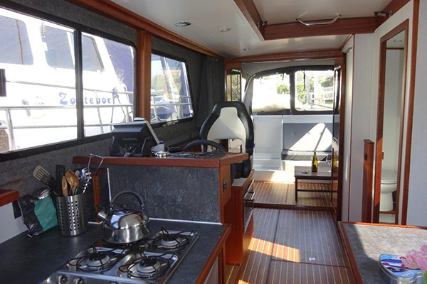 Extra: 220 V-Umformer, TV mit digitaler Antenne, DVD, GPS, Tiefenmesser, Badeplatform & Badeleiter, Geschlossenes Cabriocap mit Sitzbank