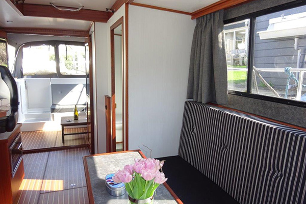 Ausstattung: Bug- und Heckschraube, Landstromanschluss, Kühlschrank, fließend Warm- und Kaltwasser, Dusche, Heizung, Bettzeug und Bettwäsche, Handtücher, Geschirrtücher, Staubsauger, Kaffeemaschine, Radio, CD