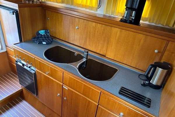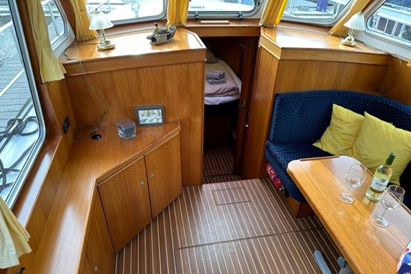 Ausstattung: Bug- und Heckschraube, Landstromanschluss, Kühlschrank, Kaffeemaschine, fließend Warm- und Kaltwasser, Dusche, Staubsauger, Heizung, Bettzeug und Bettwäsche, Handtücher, Geschirrtücher, Staubsauger, Radio, CD