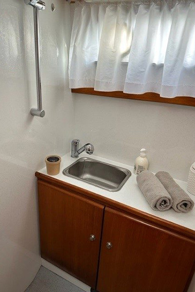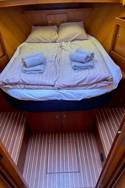 1 Doppelbett und 1 Doppelbett mit Umbau. Das komplett verschließbare Cabriocap ermöglicht einen wind- und wettergeschützten Aufenthalt an Deck.