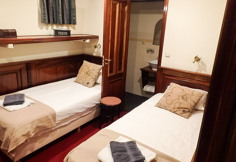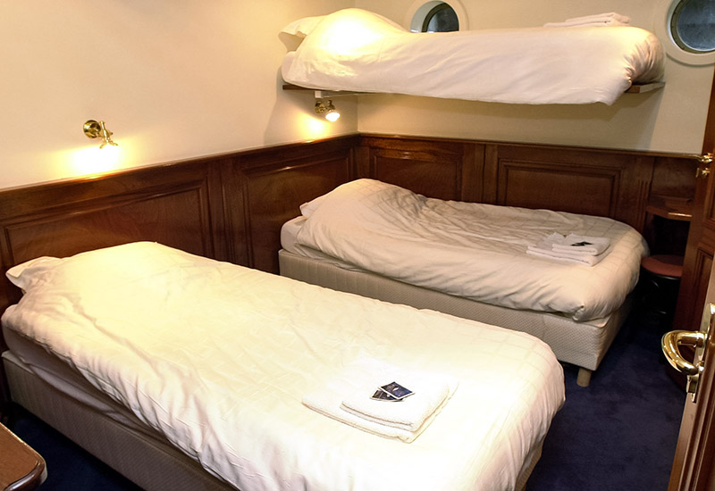 Für Familien oder Freundesgruppen stehen vier 3-Bett-Kabinen mit drittem, klappbarem Bett zur Verfügung.