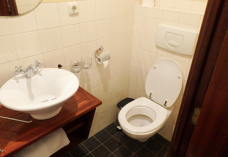 Ein eigenes Bad mit Dusche, WC und Waschbecken